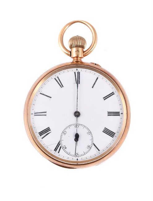 AN 18 CARAT GOLD KEYLESS WIND OPEN FACE POCKET WATCH, NO 124, CIRCA 1909