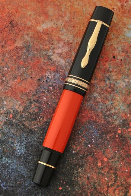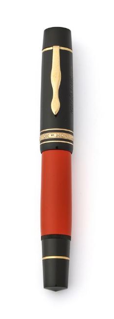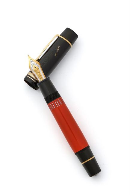 MONTBLANC, WRITERS EDITION, ERNEST HEMINGWAY A LIMITED EDITION FOUNTAIN PEN, 1992 Cap and Barrel: Orange resin barrel with a black cap, gilt clip and cap bands, ink viewing window, Ernest Hemingway facsimile signature Nib and Filling System: Yellow and white gold coloured nib stamped 18K and 750, piston filling system, inked Accessories: Original Montblanc Ernest Hemingway box, Ernest Hemingway International Service Certificate and outer card box and white card sleeve Provenance: A Single Owner Collection of Fine and Limited Edition Montblanc Pens and Accessories Condition Report: Inked, minimal signs of wearCondition Report Disclaimer