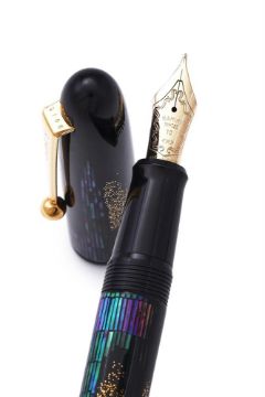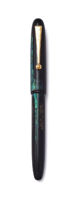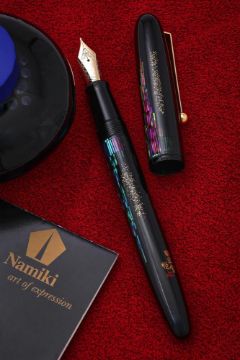 NAMIKI, NIGHTLINE A RADEN MAKI-E FOUNTAIN PEN Cap and Barrel: The cap and barrel with maki-e lacquer with raden inlay, gold dust, gilt clip Nib and filling system: Medium nib, stamped Namiki 18K-750 10 M, piston converter filler, uninked Accessories: Original wooden Namiki box with ink pot Condition Report: Minimal wear.Condition Report Disclaimer