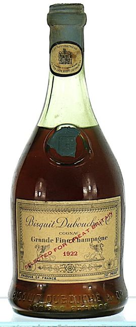 1922 Bisquit Dubouche, Grande Fine Champagne Cognac 1x70cl70% proof, damaged label, neck seal states "By appointment to the late King George VI".Stored in a private cellar in Staffordshire.