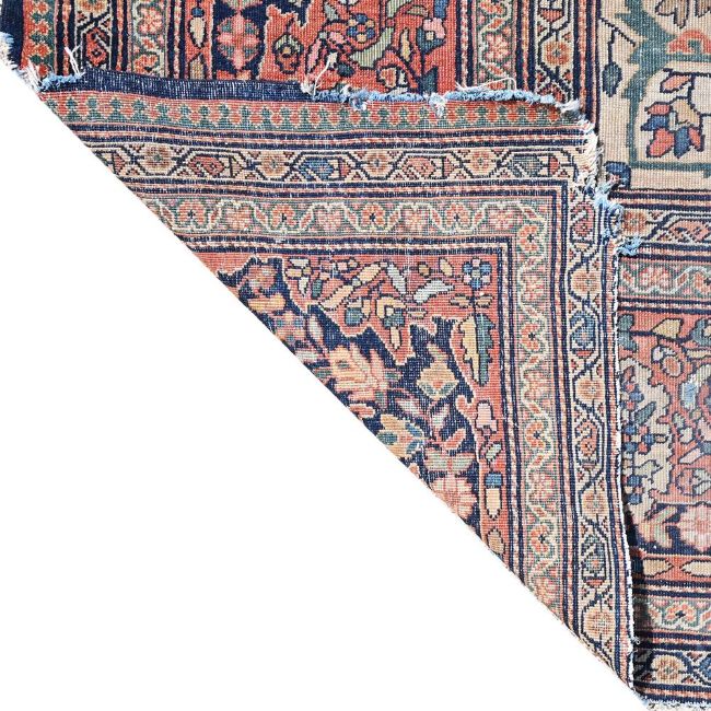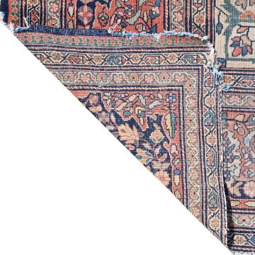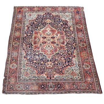 A MAHAL SAROUK CARPET approximately 381 x 281cm Condition Report: Worn overall, losses to edges from use in a domestic setting including to the short and long bound edges, fringes missing, long bindings are untidySome holes to the pilePlease see additional images for visual reference to condition and appearance Condition Report Disclaimer