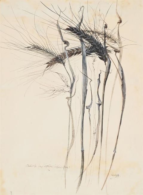 λ ALAN REYNOLDS (BRITISH 1926-2014) STUDIES FOR YOUNG SEPTEMBER'S CORNFIELD Ink and watercolour Signed and dated 54 (lower right), titled (lower left) 41 x 29.5cm (16 x 11½ in.)Provenance: Thomas Agnew & Sons Ltd., LondonThe painting 'Young September's Cornfield' was completed in 1954, the same year as this study and is held by the Tate Gallery, London.