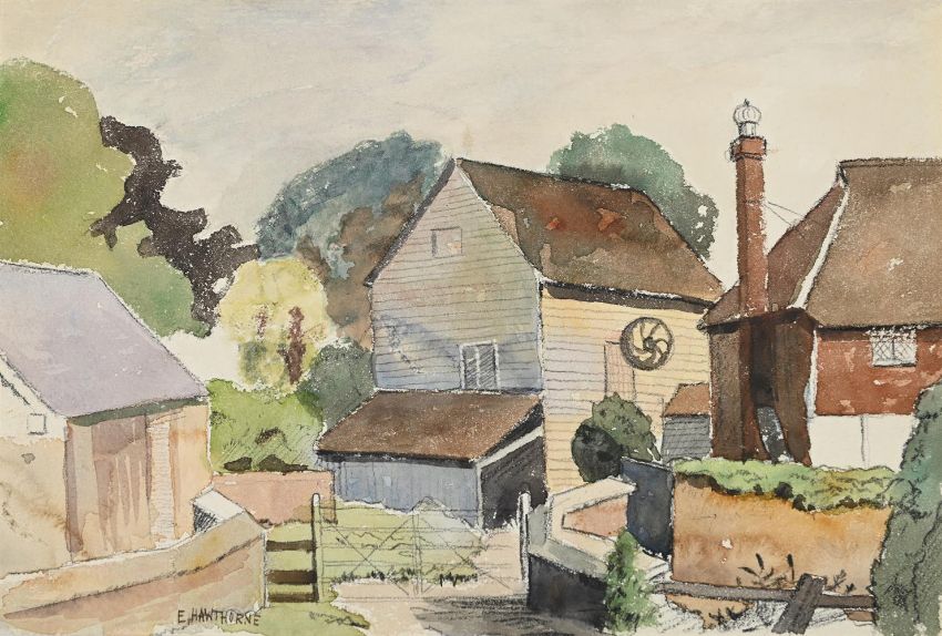 λ ELWIN HAWTHORNE (BRITISH 1905-1954) COLMAN'S HATCH, NEAR CROWBOROUGH, SUSSEX Watercolour, pencil and pastel Signed (lower left) 17 x 24.5cm (6½ x 9½ in.)Exhibited: London, Alex, Reid & Lefevre, Watercolours, Pastels and Drawings by Contemporary British Artists, December 1939, cat. no. 50