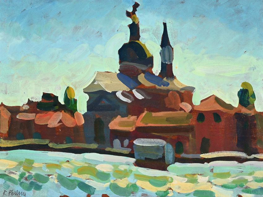 λ ROBERTO FERRUZZI (ITALIAN 1927-2010) IL REDENTORE, VENEZIA Oil on board Signed (lower left); further signed and titled (verso) 30 x 40cm (11¾ x 15½ in.) Condition Report: In good original condition. Condition Report Disclaimer