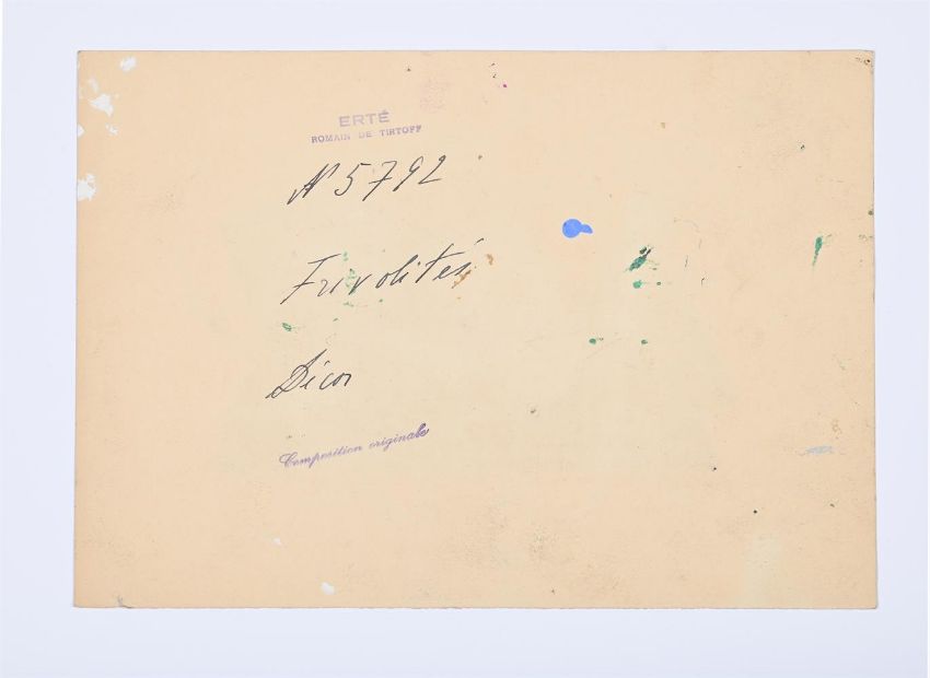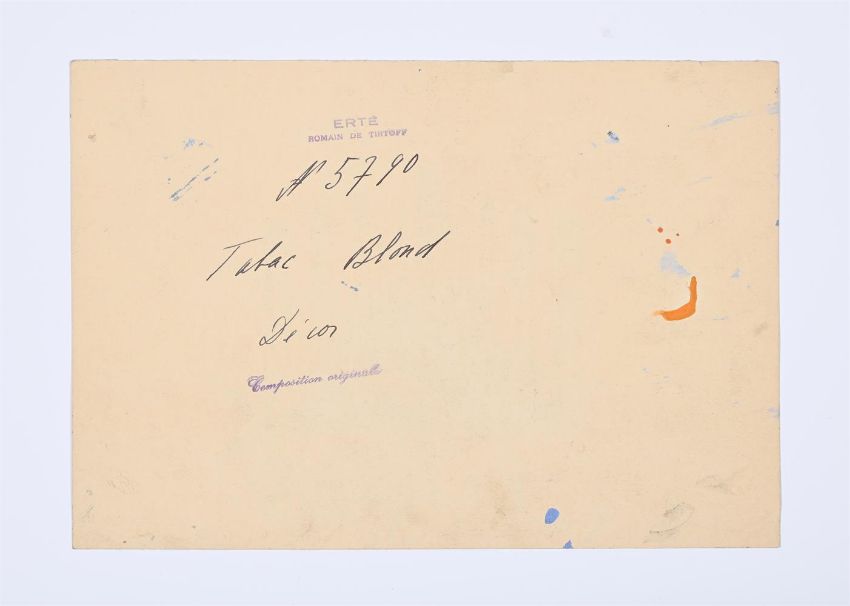 λ ERTĒ (FRENCH 1892-1990) TABAC BLOND; FRIVOLITES Gouache Both signed (lower right); stamped with studio stamp and titled (verso) Each 18.5 x 27cm (7¼ x 10½ in.) (2) UnframedProvenance: Acquired directly from the artist Thence by descent to the present owner
