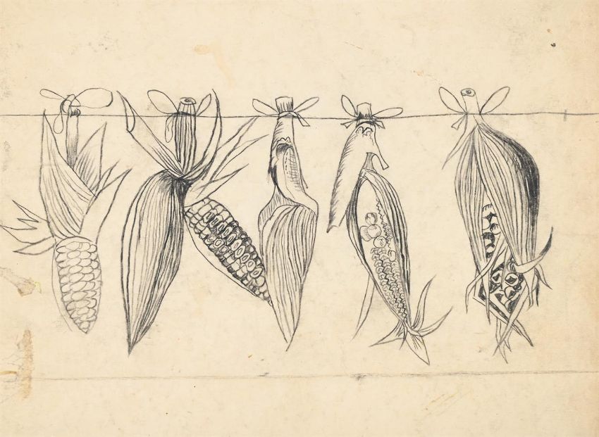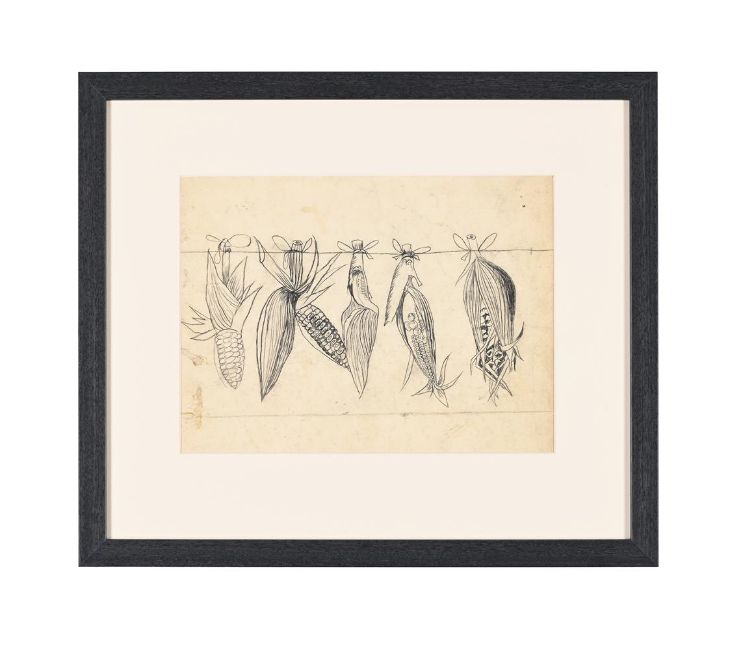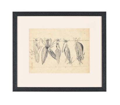 λ GRAHAM SUTHERLAND (BRITISH 1903-1980) STUDY FOR HANGING MAIZE Pencil 22.5 x 28.5cm (8¾ x 11 in.)Executed in 1948.Provenance: Private Collection, Herbert Spencer (a gift from the artist) Thence by descentLiterature:D. Cooper, The Work of Graham Sutherland, London, 1961, no.95d (illustrated)  Condition Report: There is a horizontal crease running the width of the sheet approx. 3.5cm from the lower edge. Handling creases throughout with some more notable diagonal creases to the right edge and upper left corner. Surface skinning to the lower left quadrant in two sections, the largest 3cm. Surface dirt throughout. Condition Report Disclaimer