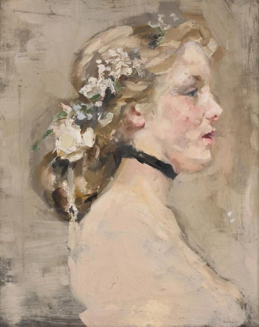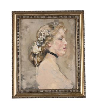 BETTY MAUD CHRISTIAN FAGAN (BRITISH 1875-1932) STUDY FOR 'THE BRIDESMAID' Oil on board Signed (lower right) 49.5 x 39.5cm (19¼ x 15½ in.) Condition Report: Condition Report Disclaimer