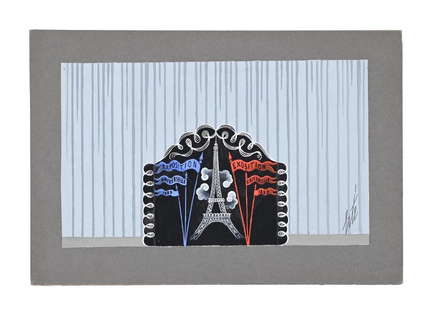 λ ERTĒ (FRENCH 1892-1990) EXPOSITION UNIVERSELLE 1889 Gouache Signed (lower right); stamped with studio stamp (on the backboard) 18 x 30cm (7 x 11¾ in.) UnframedProvenance: Acquired directly from the artist Thence by descent to the present owner