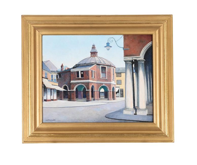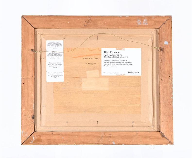 λ HAROLD STEGGLES (BRITISH 1911-1971) HIGH WYCOMBE Oil on board Signed (lower left); further signed and titled (verso) 34.5 x 42.5cm (13½ x 16½ in.)Painted in 1938.Provenance: Sir Robert Ensor, writer and poet (1877-1958) (acquired from the Ashmolean Gallery exhibition, 1939) Sale, Cheffins, Cambridge, 10 June 2010, lot 511 Private Collection, UKExhibited: London, Alex. Reid & Lefevre Ltd., New Paintings: Harold & W.J. Steggles, 1938 Oxford, Ashmolean Museum, Young British Painters, 1939, no. 101 Southend-on-Sea, Beecroft Gallery, Brothers in Art: Walter & Harold Steggles & the East London Group, September 2021-April 2022 Southend-on-Sea, Beecroft Gallery, Out of the City, 2016