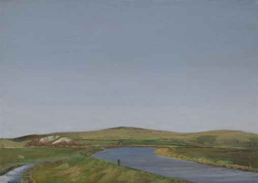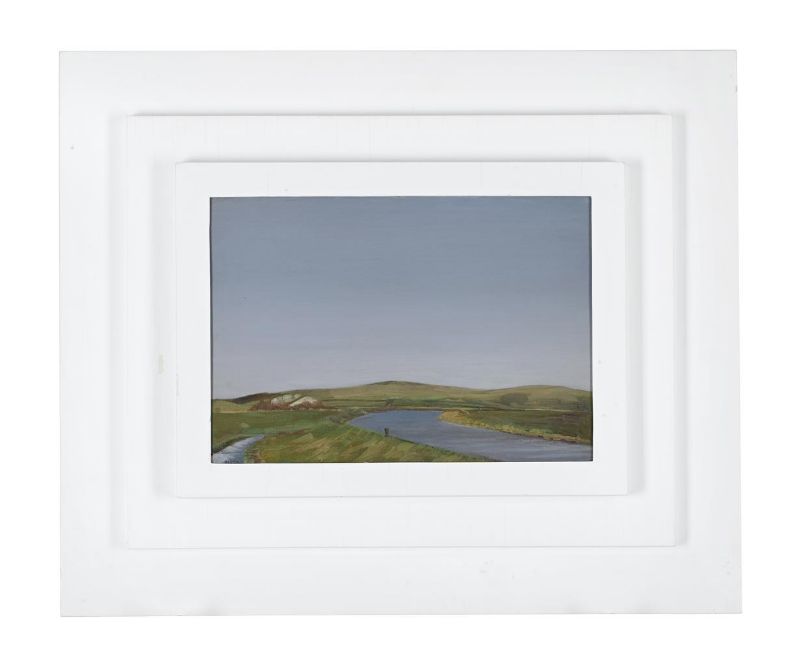 λ GLUCK (BRITISH 1895-1976) SULKY SPRING, SOUTHEASE Oil on board Signed (lower left) 26 x 36.5cm (10 x 14¼ in.) Presented in artist's three tier painted frame. Provenance: The Fine Art Society Ltd., London (by December 1937) Exhibited: London, The Fine Art Society Ltd., 1937, no. 23 London, The Fine Art Society Ltd., Memorial Exhibition, 1980-81, no. 33Literature: Diana Souhami, Gluck, Her Biography, London,1988, p.175 In February 1937 Gluck and Nesta Obermer visited Southease, a village in East Sussex in the valley of the river Ouse. The pair had a picnic from the car as Gluck began painting the vast landscape. Gluck captured the point at which the river changes its course and flows onwards to the sea. Gluck designed and painted many of her frames including the one used in the present lot. Gluck's distinctive 3 stepped symmetrical painted panels were designed to match the colour of the wall on which they were hung. It was also encouraged that the outer step could be covered in the same wallpaper to match the walls. This effect was patented in 1932 and used in all of her subsequent exhibitions. The concept became known as 'The Gluck Room'. Condition Report: There is a light surface scuff to the upper edge at the left hand side and a small spot of paint loss to the extreme edge at the centre of the lower edge. Otherwise the work appears to be in good original condition. No evidence of retouching visible under ultraviolet light. There are some dirt marks, small losses and fine cracks to the artist's painted frame. Condition Report Disclaimer