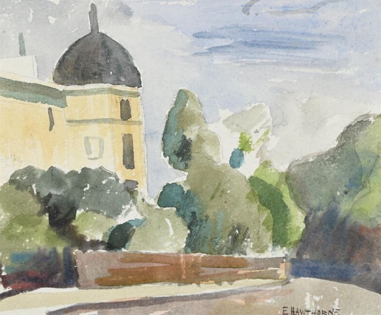 λ ELWIN HAWTHORNE (BRITISH 1905-1954) SUSSEX PLACE, REGENTS PARK, NW1 Watercolour and pencil Signed (lower right) 14.5 x 16cm (5½ x 6¼ in.)