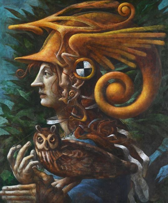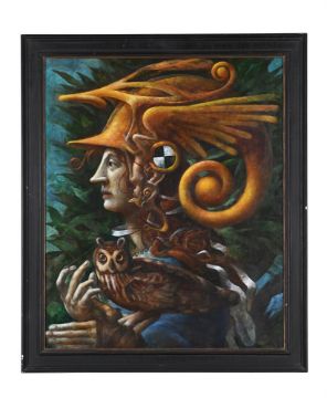 λ PAUL STOREY (BRITISH B. 1957) ATHENE WITH OWL Acrylic on board 76 x 62.5cm (29¾ x 24½ in.)Painted in 2003.Provenance: Gillian Jason Modern & Contemporary Art, London Acquired from the above by the present owner