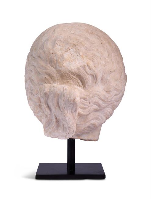 A ROMAN WHITE MARBLE HEAD OF A WOMAN 1ST/2ND CENTURY A.D. On a modern metal base bust 25.5cm high, 21.5cm wide, Condition Report: surface marks from handling, age and use, remedial repairs to nose, cheeks, brows and chin, edge wear and losses and some detail losses to ears Please see additional images for visual references to condition which form part of this condition report. All lots are available for inspection and Condition Reports are available on request. However, all lots are of an age and type which means that they may not be in perfect condition and should be viewed by prospective bidders; please refer to Condition 6 of the Conditions of Business for Buyers. This is particularly true for garden related items. All lots are offered for sale "as viewed" and subject to the applicable Conditions of Business for Buyer's condition, which are set out in the sale catalogue and are available on requestCondition Report Disclaimer
