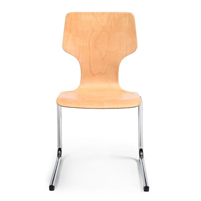 (LIKELY OF) GERMAN MANUFACTURE; DISTRIBUTED BY GORDON RUSSELL CONTRACTS LTD. EIGHT STACKING CHAIRS; CIRCA 1975 Formed plywood, aluminium 81cm high x 45cm wide x 45cm deepProvenance: Purchased directly from Gordon Russell Contracts Ltd in 1975.We would like to thank the Gordon Russell Archive for their assistance in cataloguing this lot. Condition Report: Various signs of minor wear to the wood - nicks, dints, marks, scratches to the surface in line with age and use. All surface, only one loss, to the back of one chair found. Some discolouration from the above surface conditions mentioned, but overall they present well and are all very sturdy. The chrome is in nice condition throughout. Condition Report Disclaimer