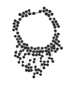 LINE VAUTRIN (FRENCH, 1913-1997) NECKLACE; CIRCA 1955 Talosel, mirror glass, nickel-silver wire Neck length 38cm (15in) Longest pendant hang 11.5cm (4½in)Provenance: Private collection, Kensington, London for over 40 years Gordon Watson Ltd Literature: Line Vautrin and Patrick Mauriès, Line Vautrin: Sculptor, Jeweller, Magician, Thames and Hudson, London, 1992, pp 69-71 (for a necklace in red mirror glass on black and for a necklace with similar design elements) Condition Report: In good condition, no detected losses. A few splits to the glass pieces, which actually could have been made in the manufacture.Condition Report Disclaimer