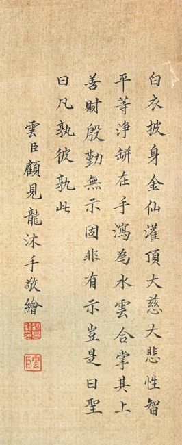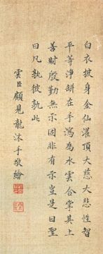 In the style of Gu Jianlong (1606-1687), Guanyin, ink and colour on silk, signed and with two seals of the artist, scroll, picture size 74.5cm x 30cm顧見龍(款)《白衣大士像》設色絹本 捲軸 Condition Report: fading throughoutCondition Report Disclaimer