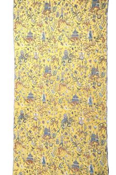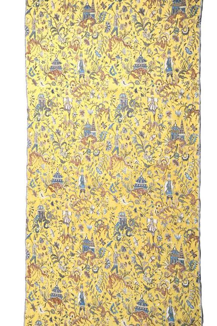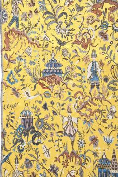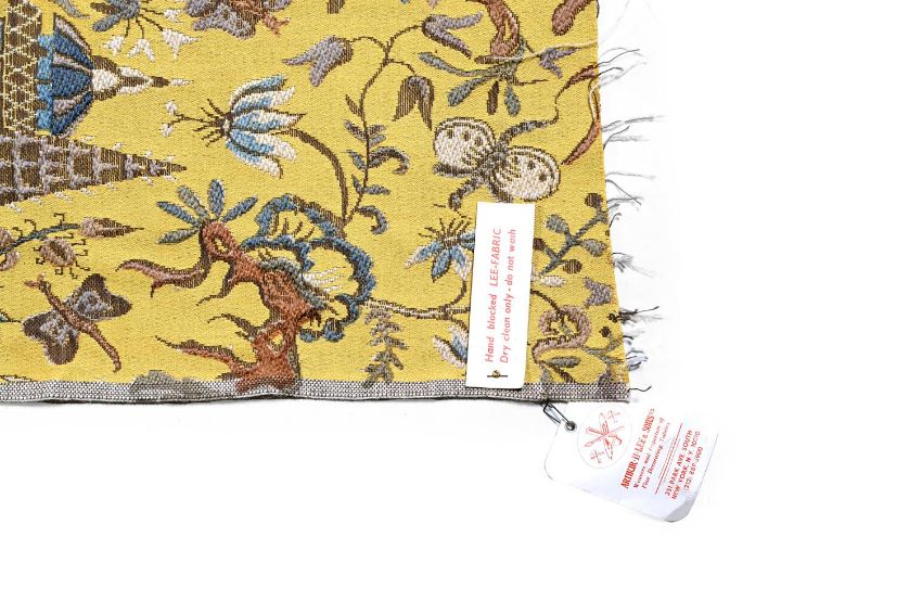 A COMPLETE SEVEN METRE ROLL OF 'CHINESE CHIPPENDALE' FABRIC BY ARTHUR H LEE LTD., 20TH CENTURY 'Pagoda Tapestry' pattern, woven on a jacquard loom and coloured by hand blocking approximately 730 x 140cm