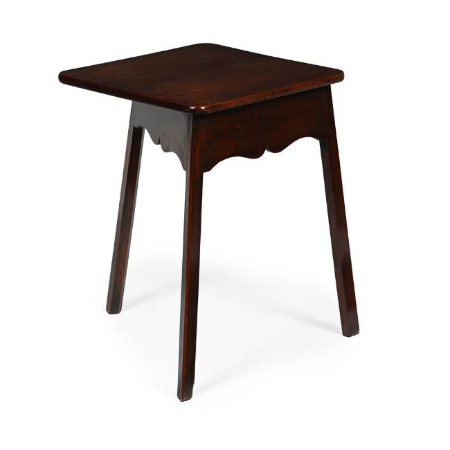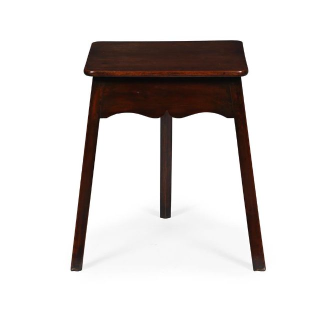 AN UNUSUAL GEORGE II MAHOGANY AND FRUITWOOD RECTANGULAR CRICKET TABLE MID 18TH CENTURY 68cm high, 65cm wide, 56cm deep
