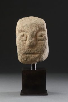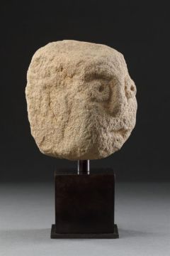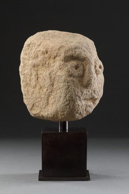 A RARE SMALL ANCIENT BRITISH CELTIC BUFF COLOURED SANDSTONE HEAD