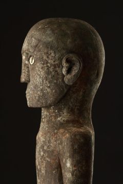 The eyes inlaid with bone, the articulated lower arms lost