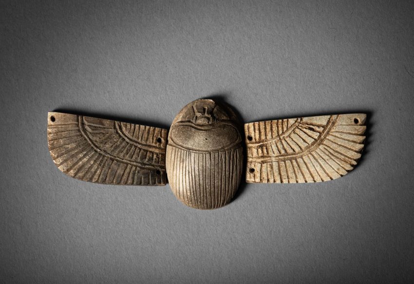 A COLLECTION OF EGYPTIAN WORKS OF ART AFTER THE ANTIQUE TO INCLUDE: Six Egyptian ushabti, largest 16cm long Six Egyptian amulets Two terracotta 'wings' and eight scarab beetle amulets Provenance: Ex UK private collection Condition Report: As per cataloguing these are in the style of ancient pieces- but are later copies. The wear and colour comes largely from manufacture with an intent to suggest greater antiquity than actually is present. Please see additional images for visual references to condition which form part of this condition report. All lots are available for inspection and Condition Reports are available on request. However, all lots are of an age and type which means that they may not be in perfect condition and should be viewed by prospective bidders; please refer to Condition 6 of the Conditions of Business for Buyers. This is particularly true for garden related items. All lots are offered for sale "as viewed" and subject to the applicable Conditions of Business for Buyer's condition, which are set out in the sale catalogue and are available on request. Condition Report Disclaimer