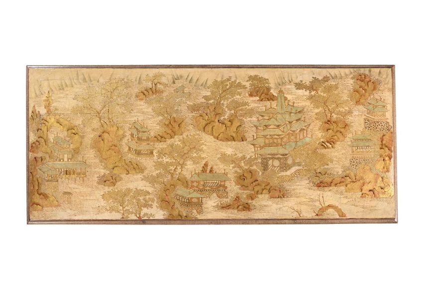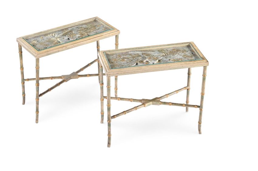 A CHINESE STYLE LACQUER LOW CENTRE TABLE MODERN, IN THE MALLETT MANNER With gilt and cream pagodas in landscape top 39cm high, 152cm long, 67cm wideAND A MODERN PAIR OF CHINESE STYLE SMALL OCCASIONAL TABLES, 52cm high, 61cm wide, 28cm deep Provenance: The Estate of a deceased Gentleman Condition Report: Please note the below condition report is the only one available. Both with the marks, knocks, scratches and abrasions commensurate with age and useSome minor wear and chips to painted surfacesBoth with significant movement within framesSome cracks to frame in places (mainly where the legs join the top) - see imagesThe above report is supported with additional images which can be sent via a link. Please 'Ask a Question' to request these images. For any further enquiries please contact the department directly.Condition Report Disclaimer
