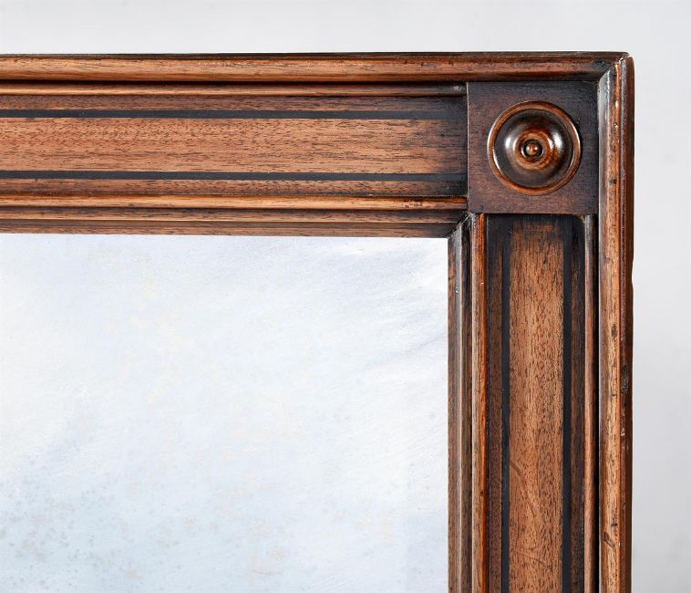 Y  A REGENCY MAHOGANY AND EBONY STRUNG MIRROR IN THE MANNER OF GEORGE BULLOCK, CIRCA 1820 83cm high, 103cm wide Provenance: Geoffrey Rose Ltd, London, May 1993 The Estate of a deceased Gentleman A copy of the receipt will be made available to the successful purchaser. Condition Report: Please note the below condition report is the only one available.Marks, knocks, scratches and abrasions commensurate with age and useSome old chips, splits and minor repairs The bevelled mirror plate has some age but it is a later replacement Various holes to the back from previous hanging fixtures The above report is supported with additional images which can be sent via a link. Please 'Ask a Question' to request these images. For any further enquiries please contact the department directly. Condition Report Disclaimer