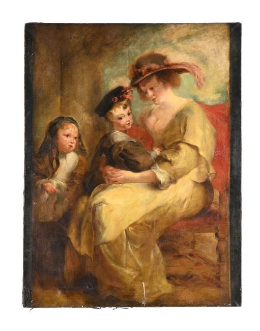 AFTER PETER PAUL RUBENS PORTRAIT OF HELENE FOURMENT WITH HER TWO CHILDREN Oil on canvas 116 x 89cm (45½ x 35 in.) UnframedHelene Fourment (1614-1673) was Rubens' second wife. The original painting is held at the Louvre, Paris. Condition Report: Condition Report Disclaimer
