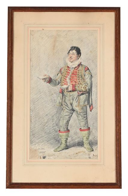 SAMUEL DE WILDE (DUTCH 1751-1832) ANDREW CHERRY IN CHARACTER Pencil and watercolour Signed and dated '1805' (lower left) 35.5 x 19cm (13¾ x 7¼ in.) Please note measurements do not include the framesDreweatts is not responsible for damage to frames