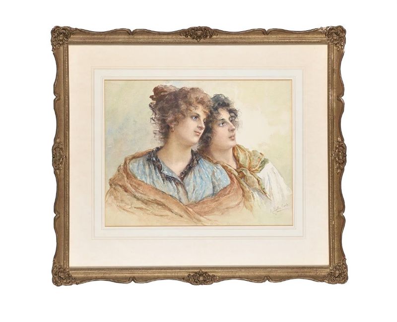 AURELIA DELLA CORTA SZVATEK (19TH/20TH CENTURY) TWO WOMEN, HEAD STUDIES Watercolour Signed (lower right) 38 x 48.5cm (14¾ x 19 in.)Measurements do not include the frame unless specified. Please note Dreweatts are not liable for damage to frames or mounts.