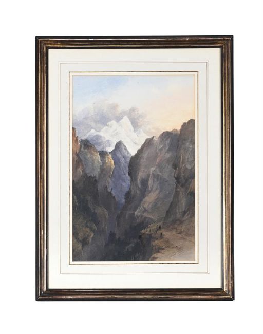 BRITISH SCHOOL (19TH CENTURY) VIEW OF A MOUNTAIN RAVINE Watercolour 42 x 28cm (16½ x 11 in.)Provenance: David Ker Fine Art, LondonMeasurements do not include the frame unless specified. Please note Dreweatts are not liable for damage to frames or mounts. Condition Report: Some light discolouration to the sheet, including staining to the framing edges, and some light scattered spots of foxing. Generally the colours are good however. Unexamined out of glazed frame.Condition Report Disclaimer