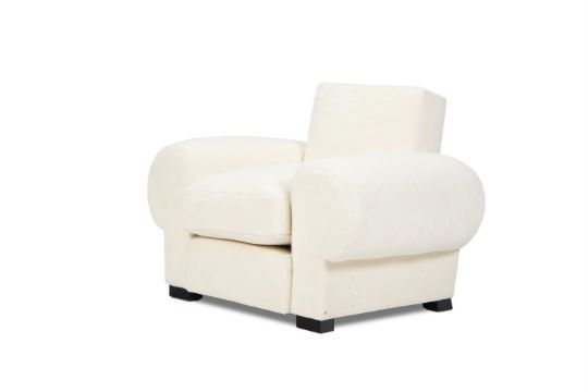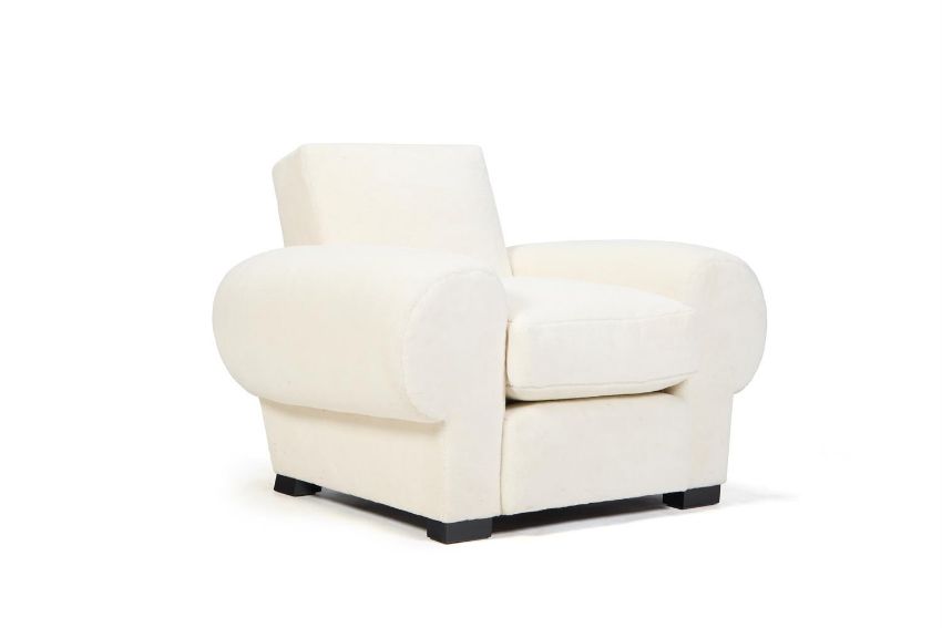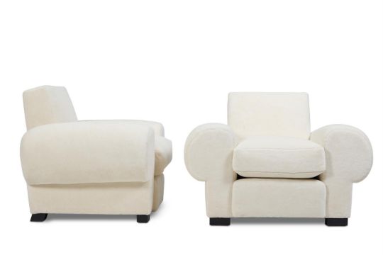 A PAIR OF ALPACA VELVET UPHOLSTERED LARGE ARMCHAIRS, IN THE MANNER OF JEAN ROYERE CIRCA 1940-1950 81cm high, 103cm wide, 84cm deep Condition Report: With wear, marks and scratches as per age, handling, use, and cleaning. Some small loss of velvet in patches throughout. Slight discolouration to the back of one. No makers label on the underside. Please see additional images for visual references to condition which form part of this condition report. All lots are available for inspection and Condition Reports are available on request. However, all lots are of an age and type which means that they may not be in perfect condition and should be viewed by prospective bidders; please refer to Condition 6 of the Conditions of Business for Buyers. This is particularly true for garden related items. All lots are offered for sale "as viewed" and subject to the applicable Conditions of Business for Buyer's condition, which are set out in the sale catalogue and are available on request.  Condition Report Disclaimer
