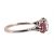 The setting has had numerous repairs, including a replaced shank and retipped claws. The central diamond colour estimated H/I, clarity VS2. Some abrasion to the synthetic rubies crown facet edges, but they are still bright.
