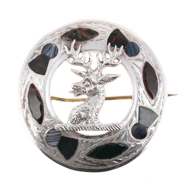 SCOTTISH INTEREST: AN EDWARDIAN SILVER AND HARDSTONE BROOCH