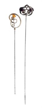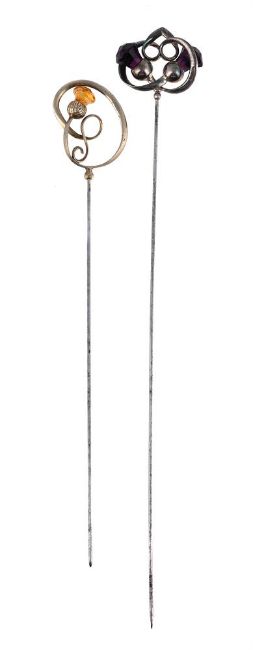 Some light wear. The silver plating on the second hat pin is missing