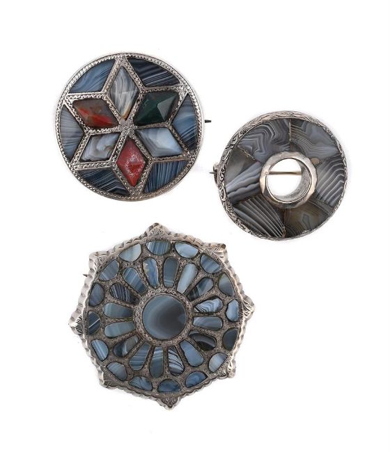 THREE VICTORIAN SCOTTISH MONTROSE AGATE BROOCHES