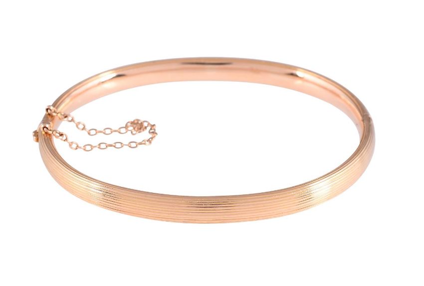 The reeded hinged bangle to concealed clasp stamped 15ct