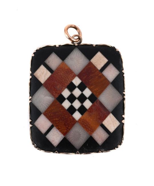SCOTTISH INTEREST: AN EARLY VICTORIAN FOSSILISED CORAL AND HARDSTONE PENDANT