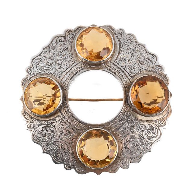 SCOTTISH INTEREST: A VICTORIAN SILVER AND CITRINE QUATREFOIL BROOCH