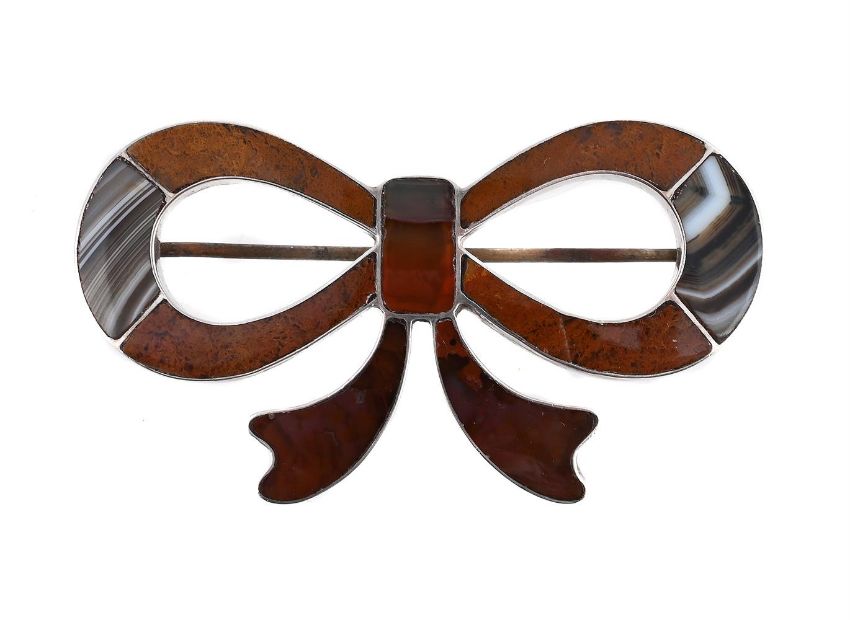 SCOTTISH INTEREST: A LATE VICTORIAN AGATE BOW BROOCH