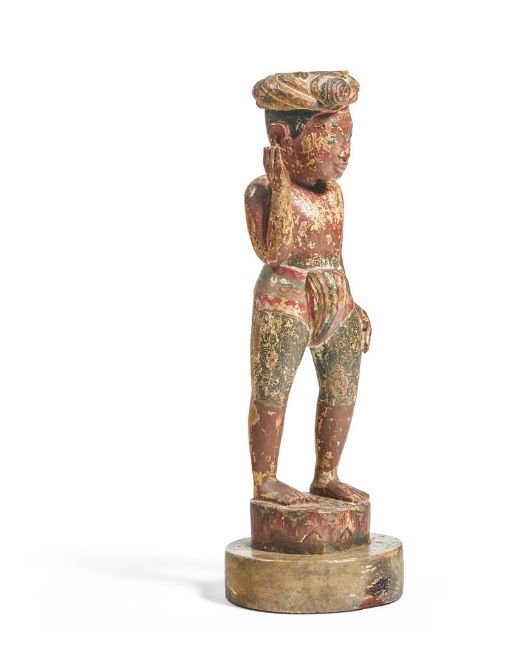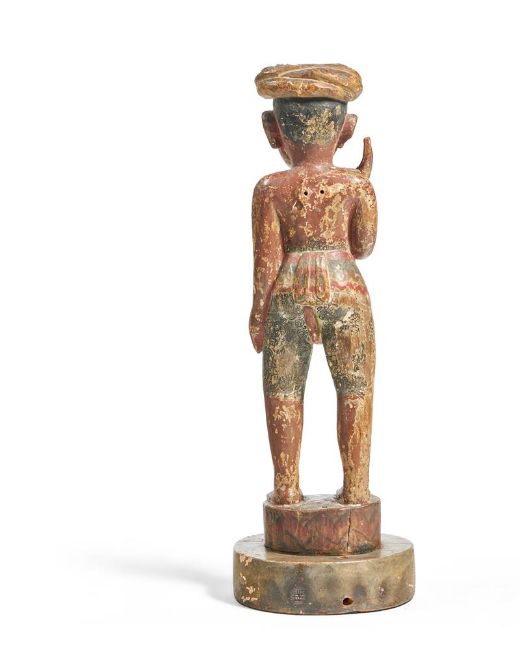 A LARGE INDIAN PAINTED WOOD FIGURE OF A SERVANT LATE 19TH CENTURY 58cm