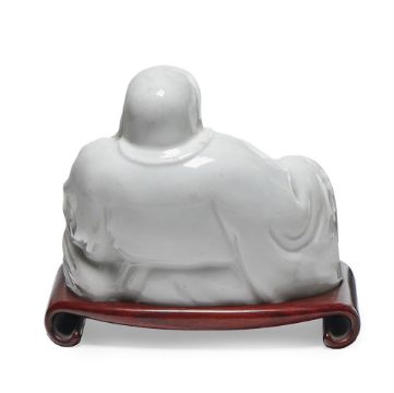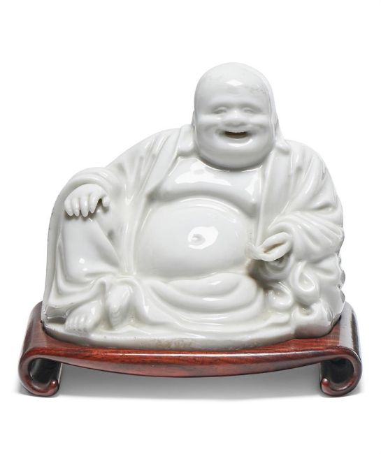A CHINESE DEHUA FIGURE OF BUDAI QING DYNASTY The figure is moulded wearing loosely draped robes that open at his chest to reveal his corpulent form, and holding a prayer bead in his left hand 11cm highProvenance: Edward T. Chow, Hong Kong, 27th December, 1962 Condition Report: small scratches to the surfaceCondition Report Disclaimer
