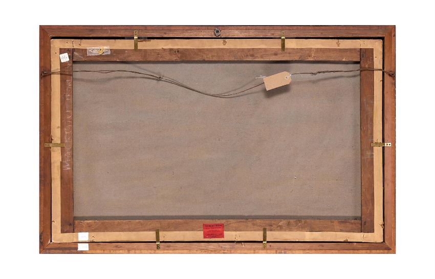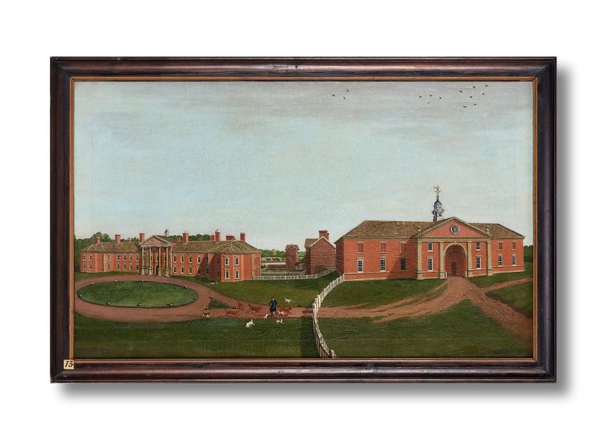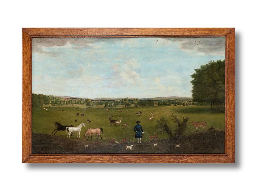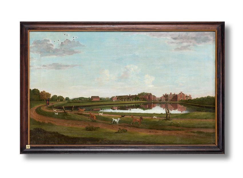 THOMAS BARDWELL (BRITISH 1704-1767) VIEWS OF ADLINGTON HALL AND PARK Oil on canvas, a set of four Each 61.5 x 101cm (24 x 39.3⁄4 in.) (4) Provenance: Charles Legh, descent to current ownerLiterature: County Life, 28 November 1952, p.1734, fig. 1; 12 December 1952, p. 165, fig.9. J. Harris, The Artist and the Country House, London, 1979, p.321, no.360. P. de Figueiredo and Julian Treuherz, Cheshire Country Houses, Chichester, 1988, pp.17-18, fig.9. G. Tyack and S. Brindle, Country Houses of England, 1994, pp.84-85. J. Harris, The Artist and the Country House. London, 1995, p.84-5, fig. 57-8.  Exhibition: Sotheby's London, The Artist and the Country House, no.57 and 58. The present lot is a striking example of English country house portraiture, commissioned as a painterly record of a generation's contribution to the family seat. The tradition of estate painting arrived in England relatively late in comparison with the continent, where Renaissance rulers and aristocrats sought to document their palaces and homes. While oil paintings on canvas of a standalone property are unrecorded in England before 1600, the tradition was taken up with great enthusiasm and the art form reached its zenith in the eighteenth-century.Born in Suffolk in 1704, Thomas Bardwell was a painter with a varied oeuvre; he travelled across England and Scotland executing country house views, portraits and conversation pieces. He began his artistic career decorating house interiors and initially owned a paint supply business. Although he lacked formal training, in the 1720s he was employed by the successful country house painter Peter Tillemans (c. 1684-1734) to paint Livermere Hall in Bardwell's native East Anglia. Tillemans' influence on Bardwell is discernible from his earliest topographical pictures. Notably, his painting of Hedenham Hall (1735) adopts Tillemans' distinctive equine staffage, shown most prominently in his view of Chatsworth (1720s). Though charmingly naïve, this early work is also notable for its sensitive observation of detail and miniature-like quality.Previously attributed to James Shrigley, The Adlington views demonstrate how Bardwell's proficiency in country house painting evolved in his mature years. First and foremost, the works memorialise the architectural achievements of Charles Legh (1697-1781), including the south wing portico, detached stable block, domed Temple of Diana and garden follies. Although early continental estate pictures certainly display a keen interest in preserving specific details, decorative concerns often came at the expense of accuracy and views were compressed to create broad pictorial maps. By the turn of the 18th century, however, artists and patrons responded to the growing study of topography and sets of elevational views proliferated to provide a comprehensive record.Bardwell's interest in perspectival accuracy therefore made him a fitting choice for the commission. Published in 1756, his study The Practice of Painting and Perspective Made Easy offers the reader a guide to the principles of perspective using illustrations of buildings, gardens and avenues. His principles are brought to fruition in the present works, through geometric precision, carefully manipulated areas of light and shadow and the incisive rendering of architectural detail.Bardwell's views also act as a celebration of the English estate, with its bucolic scenery and rural pleasures. Following Charles Legh as he strolls around the grounds, the paintings provide a pictorial tour of the landscape. The parkland is characteristic of the mid eighteenth-century designs popularised by Lancelot 'Capability' Brown, with rolling pastures and clusters of trees. Horses graze, deer and rabbits frolic, and Charles Legh is accompanied by a crowd of his cherished dogs. Indeed, the lines between portraiture, landscape, sporting and country house painting blurred in English eighteenth-century conversation pieces and works began to speak to the symbiotic relationship between the home and family. Thomas Bardwell's portraits, for instance, often include the sitter's home in the background and his estate views show figures riding or promenading through the grounds.John Steegman wrote that 'a house may be called Castle, Abbey, Priory, Park, Hall, Court, Manor, or just a House...But they are all houses, which have been born-in, lived-in and died-in by the family, and which are centred the family's affections and pride'. Bardwell's pictures animate the country house by reflecting the delight and fulfilment of those who inhabit it. In one view, Charles Legh stands proudly before the imposing new facade. Another shows him looking across his sweeping vista and admiring Adlington Hall from a distance. In each picture, however, the figure moves unobtrusively across the landscape; there is an awareness of his transience. While one generation travels through, the home and park remain the constant focus, a testament to one family's enduring legacy. Condition Report: White picket fence, centrally located The paintings has been wax lined. There are multiple chip losses evident and a strong pattern of craquelure present. Examination under UV light reveals touches to many of the chip losses, along with work to a 4 ½ in. (approx.) vertical tear to the canvas, located in the sky on the right, and to a few additional infills in the sky. In the foreground there are some more dispersed spot touches and some glazing to thinness. Dogs in front of lake The painting has been adhered onto an oil tempered hardboard. This structural treatment is designed to support the original canvas which has several repairs to it along with a strong pattern of craquelure. Examination in a raking light suggests a good adhesion within the work and a certain level of structural stability. Examination under ultra violet light reveals some scattered retouches to a combination of isolated chip loses, some of these combine to form a more concentrated area of wor