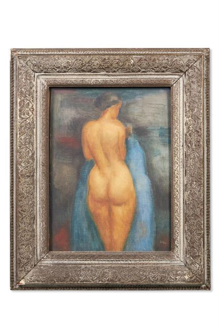 CONTINENTAL SCHOOL (20TH CENTURY) NUDE IN A LANDSCAPE Oil on canvas Indistinctly signed Kolder/Kilder (lower right) 39 x 29cm (15¼ x 11¼ in.)