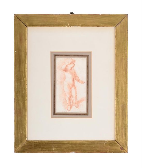 FLORENTINE SCHOOL (POSSIBLY 16TH CENTURY) STUDY OF A PUTTO WITH A RAISED HAND (RECTO), STUDY OF PUTTI (VERSO) Red chalk 17 x 9.5cm (6½ x 3½ in.) Measurements do not include the frame unless specified. Please note Dreweatts are not liable for damage to frames or mounts. Condition Report: PLEASE NOTE: ALL LOTS IN THIS AUCTION ARE NOT AVAILABLE TO VIEW Unexamined out of glazed frame. Visible stains are present to the edges, possibly caused by a previous mount. Various dotted dirt stains scattered throughout, most noticeable to the upper left corner of the verso. In addition, scattered foxing is present.Please note high resolution images are available upon request please contact the department directly on pictures@dreweatts.com PLEASE NOTE: ALL LOTS WILL BE AVAILABLE TO COLLECT FROM SACKVILLE WEST STORAGE IN ANDOVER SP10 3SA, TWO DAYS AFTER THE AUCTION. Condition Report Disclaimer
