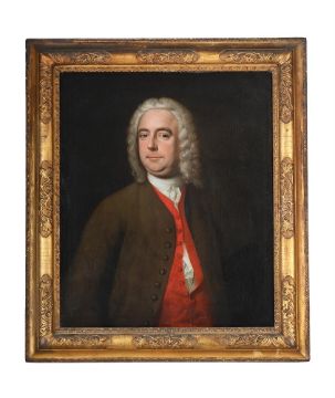 ENGLISH SCHOOL (18TH CENTURY) PORTRAIT OF A GENTLEMAN, TRADITIONALLY IDENTIFIED AS ROBERT EYRES OF CAVENHAM HOUSE, WEREHAM, NORFOLK Oil on canvas 75 x 62cm (29½ x 24¼ in.) Condition Report: The canvas has been lined, cleaned and re-varnished. Fine craquelure throughout, however the paint surface appears stable. Minor scuffs, surface dirt, and superficial surface scratching throughout. Rubbing and abrasions to the framing edges. Inspection under UV light reveals minor retouching and in-filling, together with a green cloudy varnish. Condition Report Disclaimer