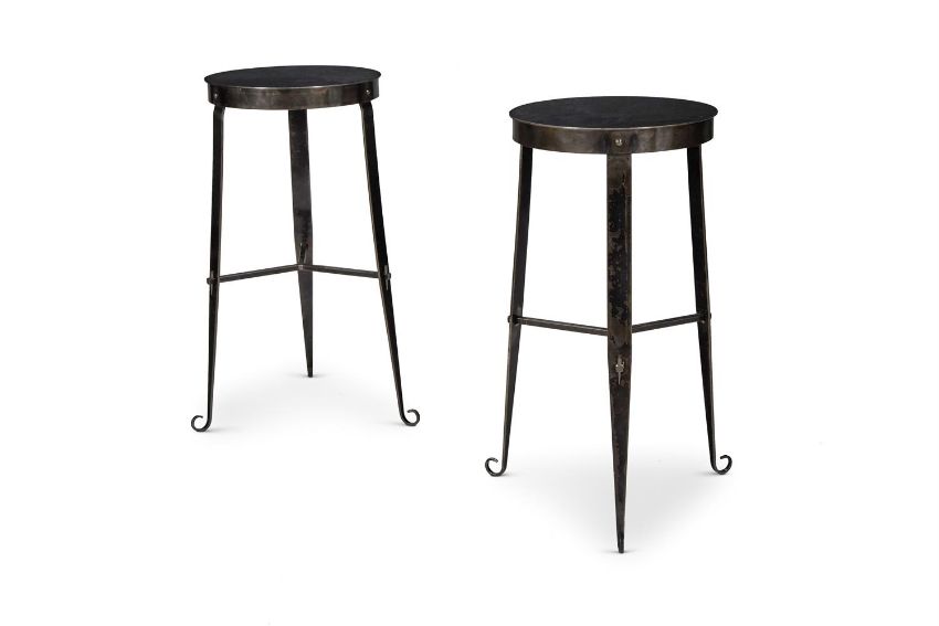 A PAIR OF STEEL OCCASIONAL TABLES MODERN Each with circular tops 70cm high, 35cm diameter