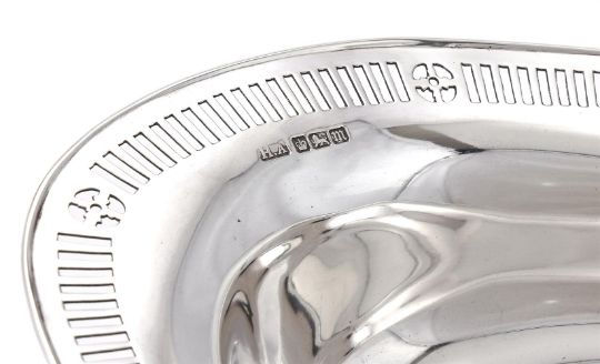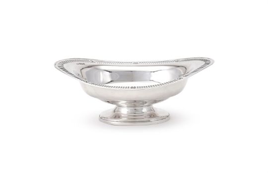 AN EDWARDIAN SILVER OVAL PEDESTAL BOWL ATKIN BROTHERS, SHEFFIELD 1904 With a pierced border and on an oval pedestal foot 29cm (11 1/2in) long 438g (14.1 oz) Condition Report: Marks are clearStands wellNo engravingLight scratches and wear commensurate with age and useCondition Report Disclaimer