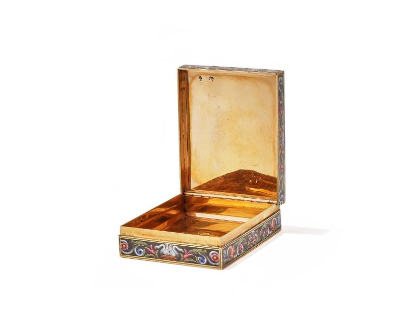 Y AN EARLY 19TH CENTURY ENAMELLED GOLD BOX WITH THE PORTRAIT OF BERNHARD VON LINDENAU CIRCA 1797, UNIDENTIFIED MAKER'S MARK The rectangular box with a miniature portrait to the lid of Bernhard von Lindenau gazing at a star after Giuseppe or Josef Grassi, the base of the box with enamelled pictorial horoscope with demi lioness and foliate decoration to the corners, the sides with scrolled acanthus leaves, flowers and grotesque decoration, stamped with Paris 1797 poincon, France 1798-1809 little guarantee mark, and a lozenge shaped maker's mark Size/dimensions: 6 x 5 x 1.8cm Gross weight: 105.5gBernhard Von Lindenau (1779-1854) was a German lawyer, astronomer, politician, and notable art collector, whose collection became the foundation of the Staatliche Lindenau-Museum in Altenburg. The original portrait of Bernhard August von Lindenau by Giuseppe or Josef Grassi was painted in 1814, the miniature is a later addition to the box.Please note Dreweatts have applied for a de minimis exemption licence for the ivory in this lotRef: LY3CRM72Y Indicates that this lot may be subject to CITES regulations when exported. The import of lots that are subject to CITES regulations are banned in certain countries. Please check your country's import regulations before bidding. Condition Report: The miniature was later added to the box as the original portrait dates to 1814, after the French poincons of Paris 1797 and the control mark for France little guarantee mark 1798-1809. The gold frame is also a slightly different colour.The box has some repairs to the enamel one to the front corner and a patch to the section by the hinge. The marks are fairly clear, some rubbing. The makers mark appears to be L (The letter is partial) and P with a cross between with orb to the base.Condition Report Disclaimer