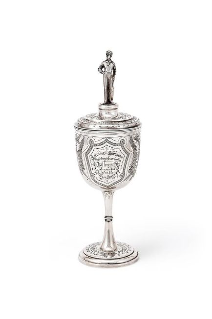 AN AUSTRALIAN SILVER CRICKETING TROPHY CUP AND COVER